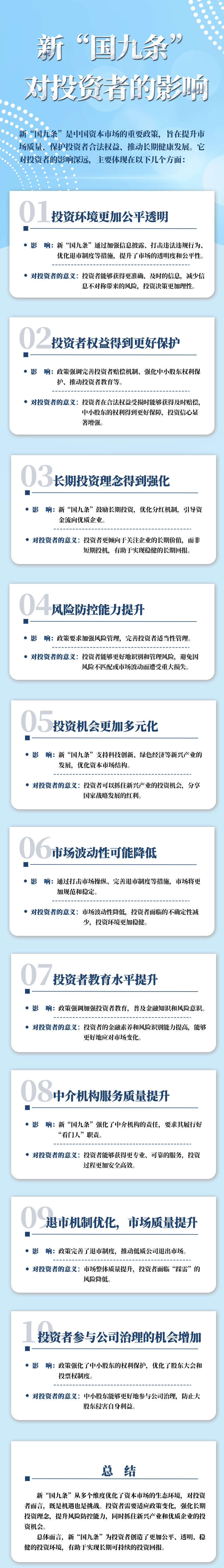 在投資領域,規則與保障至關重要!新“國九條”重磅來襲,它是資本市場穩健前行的堅實后盾。想知道如何在投資中更好地維護自身權益,遠離非法陷阱嗎?新“國九條”給出答案。它聚焦監管與風險防范,推動資本市場高質量發展,從多方面為投資者保駕護航。速來了解,開啟理性投資新征程!